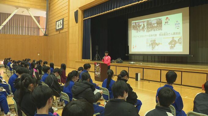 3月開幕するミラノ・コルティナパラリンピックに出場する長野県高森町に住むパラアイスホッケー日本代表キャプテンの熊谷昌治(くまがい・まさはる)選手が地元の中学校で講演を行いました。