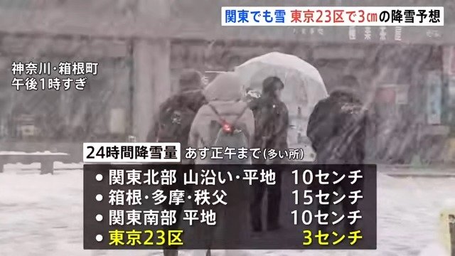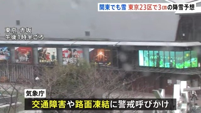 また、東京23区でも3センチの雪が降る予想で、積もる可能性があるということです。