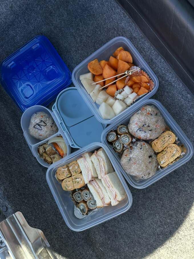 蜂谷さんは「前日の夜にお弁当作れる?って言われて、ありものでなんとか頑張りました」と綴り、手作り弁当の画像も添えています。