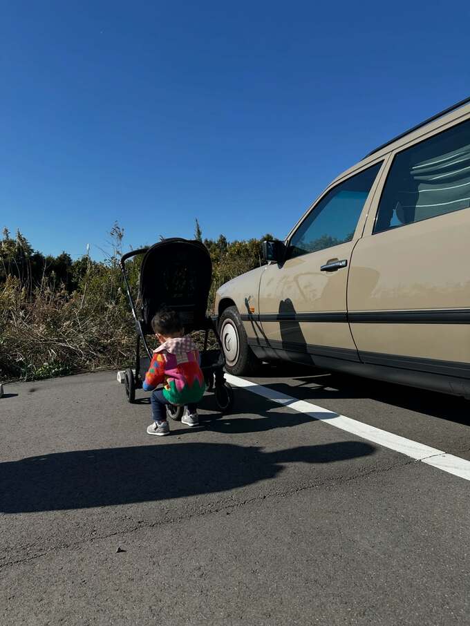 愛車はメルセデス・ベンツ E280 ステーションワゴン(W124型)の「Classic Line(クラシックライン)」。1990年代の名車で、井戸田さんが2024年、第1子誕生の時期にこだわりを持って購入した一台でした。