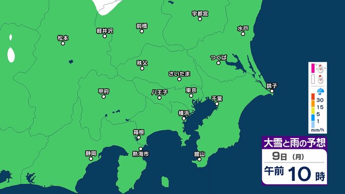 【首都圏・雪の予想】東京・栃木・群馬・埼玉・茨城・千葉・神奈川・長野・山梨 7日(土)~10日(火)1時間ごとの雪雨シミュレーション「関東地方南部の平地で10センチ降雪予想」【気象庁/7日午後5時更新 関東甲信】 RSK山陽放送 2026年2月7日(土) 17:11 国内 9日(月) 7日(土)~10日(火)の1時間ごとの雪雨シミュレーション 7日(土)~10日(火)の1時間ごとの雪雨シミュレーション