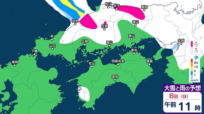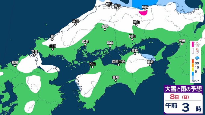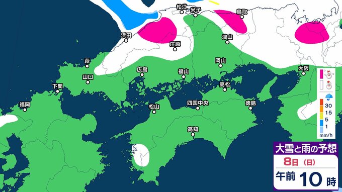 【中国地方の雪の予想】広島・岡山・山口・鳥取・島根 7日(土)~10日(火)1時間ごと雪雨シミュレーション【気象庁 7日午後7時更新】 RSK山陽放送 2026年2月7日(土) 19:00 国内 8日(日) ▶7日(土)~10日(火)中国・四国地方の雪雨シミュレーション画像 ▶7日(土)~10日(火)中国・四国地方の雪雨シミュレーション画像