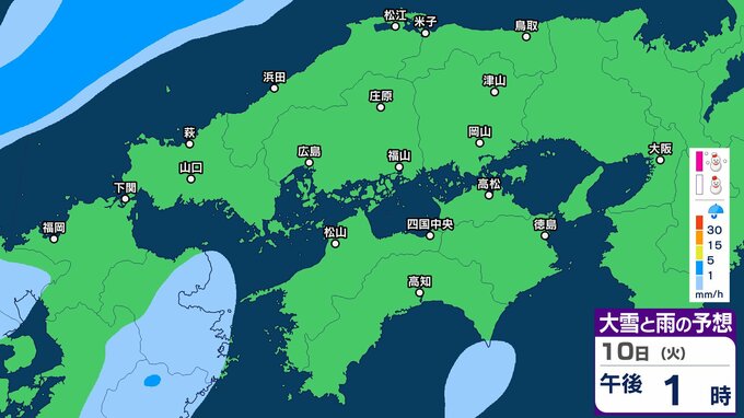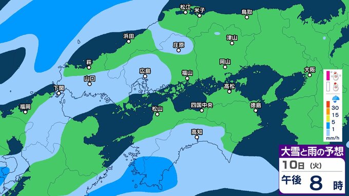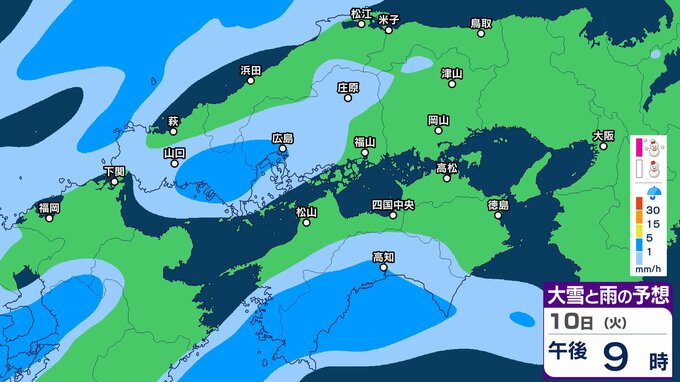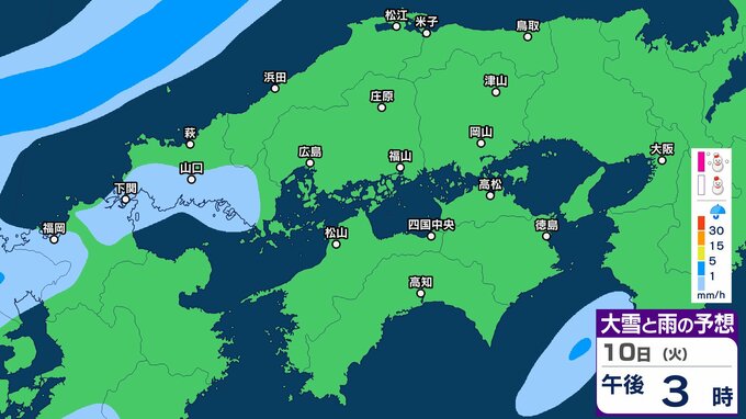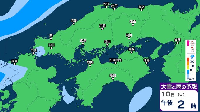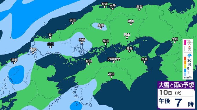 【中国地方の雪の予想】広島・岡山・山口・鳥取・島根 7日(土)~10日(火)1時間ごと雪雨シミュレーション【気象庁 7日午後7時更新】 RSK山陽放送 2026年2月7日(土) 19:00 国内 10日(火)午後 ▶7日(土)~10日(火)中国・四国地方の雪雨シミュレーション画像 ▶7日(土)~10日(火)中国・四国地方の雪雨シミュレーション画像 ※GSM(シミュレーション)は比較的大まかに雨・雪雲を予想する傾向があるため、局地的には雨・雪が降らないこともあります。予想にはブレ幅がありますので、最新の気象情報を確認してください。