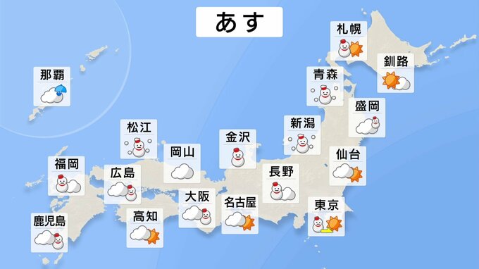 日本海側は大雪が続く見込みです。山陰や近畿北部は、あす日中にかけて雪のピークに入り、短時間で積雪が急増するでしょう。車の立ち往生などに警戒してください。関東は平地も含めて、あす昼ごろまで大雪に注意が…
