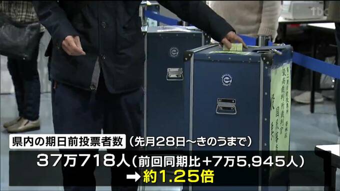 宮城県選挙管理委員会によりますと、6日までの10日間に宮城県内で期日前投票をした人の数は37万718人で、前回2024年の衆院選より7万5945人多く、約1.25倍となっています。