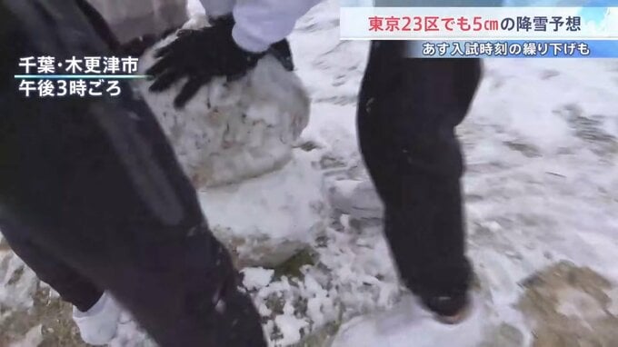 こちらは午後3時すぎの千葉県木更津市内の公園の様子です。一面銀世界となり、雪だるまを作って遊ぶ人も。