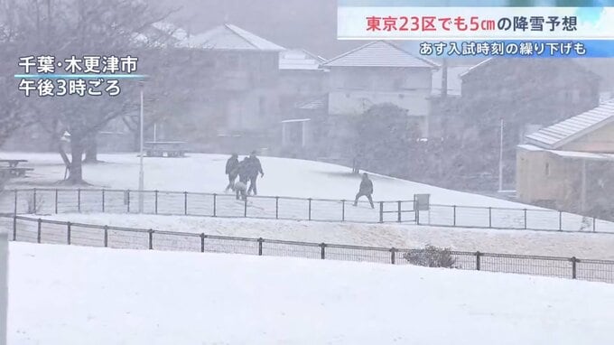関東地方では各地で雪が降っていて、東京23区ではあす夕方にかけて5センチの雪が降ると予想されています。