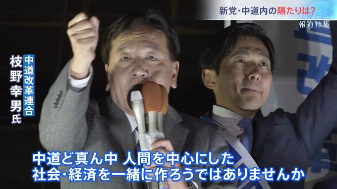 「今までの経緯いろいろありますが、今こうして力を合わせて、中道ど真ん中、人間を中心にした社会・経済を一緒に作ろうではありませんか」