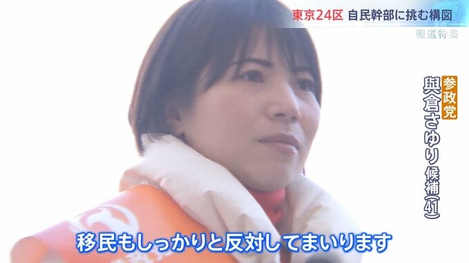 参政党からは、介護ヘルパーで前回の衆院選にも出馬した與倉さゆり候補(41)。外国人労働者の受け入れ見直しや減税などを訴えた。