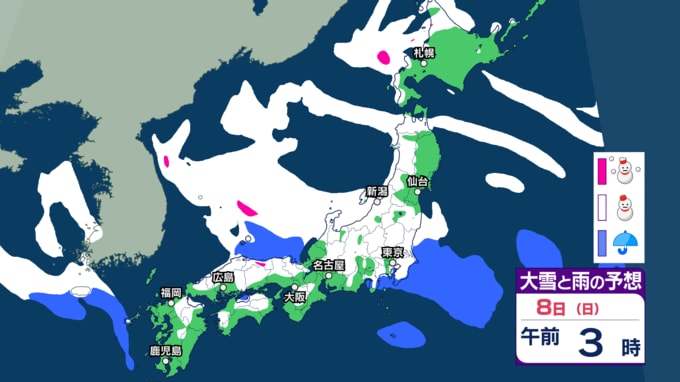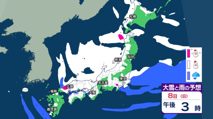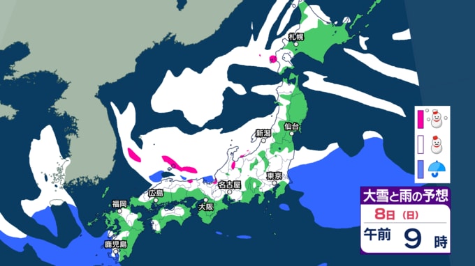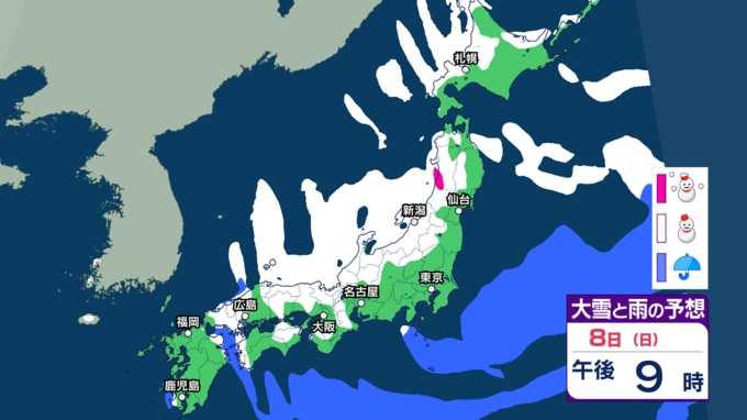 【大雪情報】強烈寒波で警報級大雪か 普段雪の少ない太平洋側も 北海道、東北、関東甲信、北陸、東海、近畿、中国、四国、九州【気象庁・大雪と雷及び突風に関する全般気象情報】 あいテレビ 2026年2月7日(土) 22:32 国内 ▼全国各地の雪予想はこちら