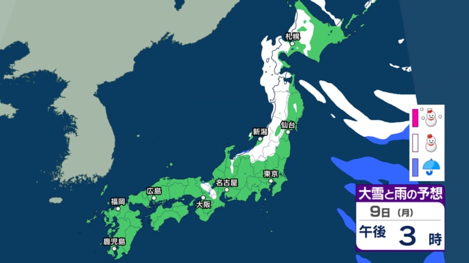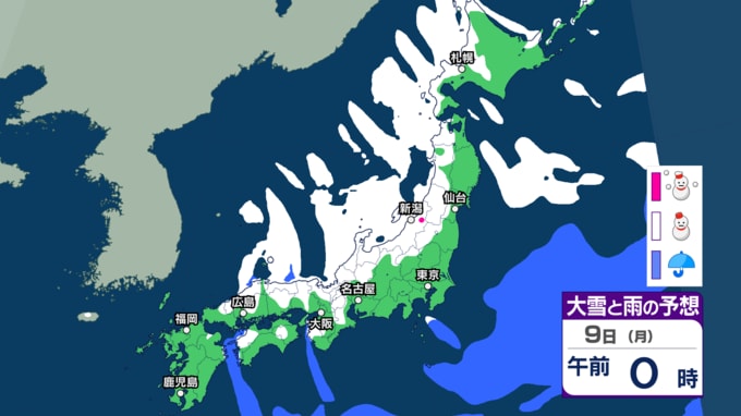 【大雪情報】強烈寒波で警報級大雪か 普段雪の少ない太平洋側も 北海道、東北、関東甲信、北陸、東海、近畿、中国、四国、九州【気象庁・大雪と雷及び突風に関する全般気象情報】 あいテレビ 2026年2月7日(土) 22:32 国内 ▼全国各地の雪予想はこちら