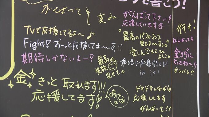 出身地の岐阜県池田町の道の駅には、堀島選手を応援するメッセージボードが設置されていて、訪れた人たちが堀島選手を励ます言葉を書き込んでいます。