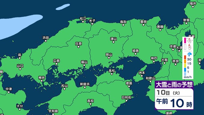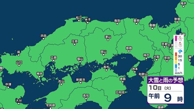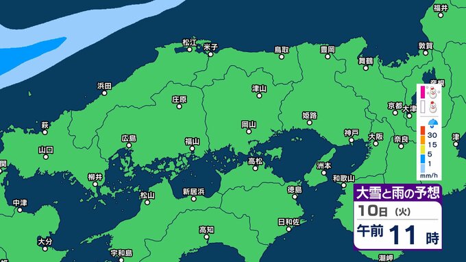 【中国・四国地方の雪の予想】広島・岡山・山口・鳥取・島根・香川・愛媛・高知・徳島 2月8日(日)~11日(祝・水)1時間ごとの雪雨シミュレーション【気象庁 8日午前10時】 RSK山陽放送 2026年2月8日(日) 10:13 国内 9日(月)午後 8日(日)~11日(祝・水)中国・四国地方の雪雨シミュレーション画像 8日(日)~11日(祝・水)中国・四国地方の雪雨シミュレーション画像 10日(火) 8日(日)~11日(祝・水)中国・四国地方の雪雨シミュレーション画像 8日(日)~11日(祝・水)中国・四国地方の雪雨シミュレーション画像