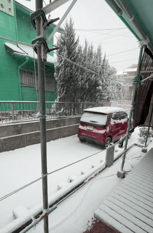鹿児島市牟礼岡で午前10時ごろ撮影された映像です。地面が見えないぐらいの雪が積もっています。午前10時ごろも牟礼岡では雪が舞っているのが確認できます。