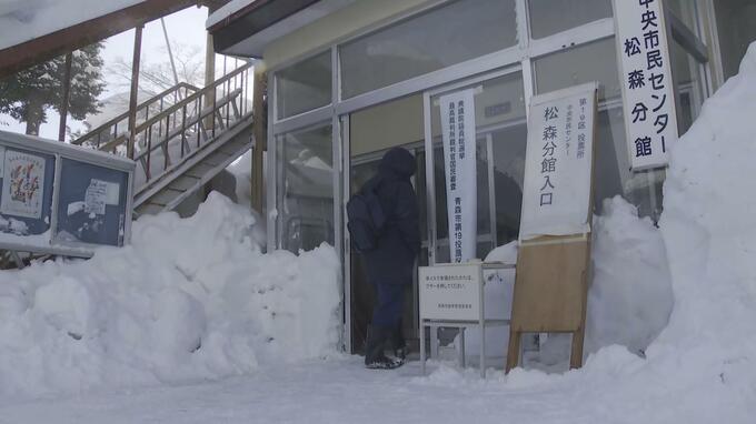 このうち、豪雪に見舞われている青森市の投票所では雪が降り続く中、有権者が慎重に雪道を歩いて投票所を訪れていました。