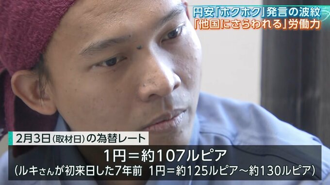 「非常に私としてはですね、心苦しいです。(最低賃金)プラスアルファで雇用しているが、それ以上に他の国が高いんですね。そこの国の為替が強いので、いま他の国にだいぶ(労働力を)さらわれ始めてる。働くプロとして来てる子にとりましては、いま夢のない日本じゃないのかなという心配もしております」