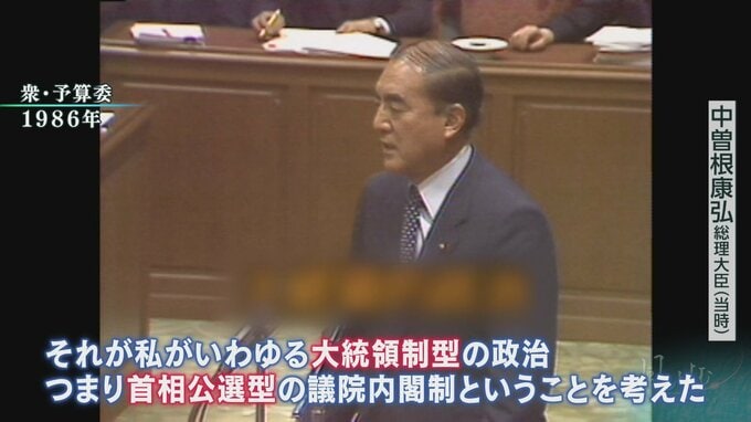 「それが私がいわゆる大統領制型の政治、つまり首相公選型の議員内閣制ということを考えた」