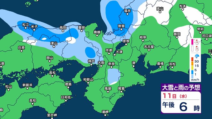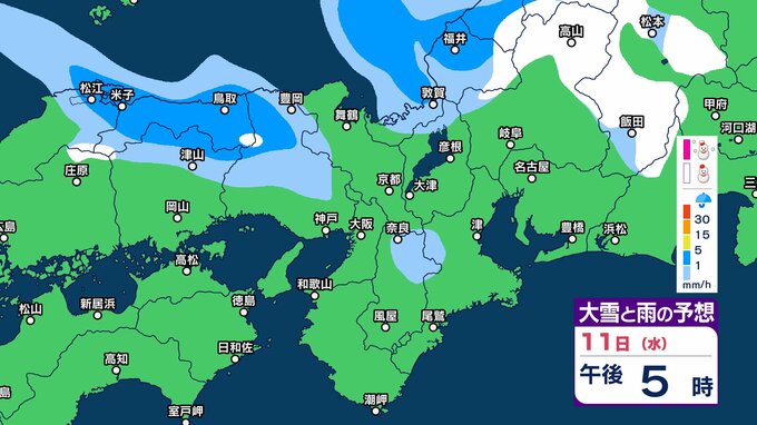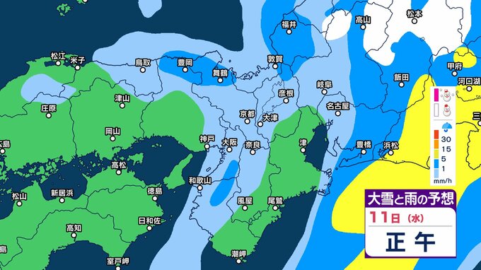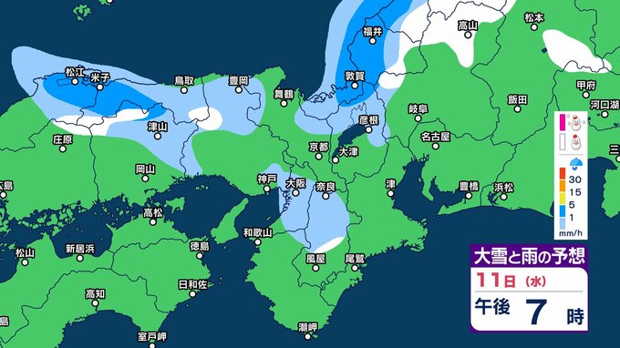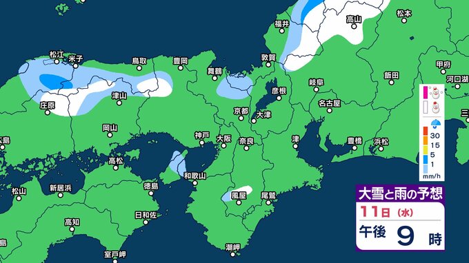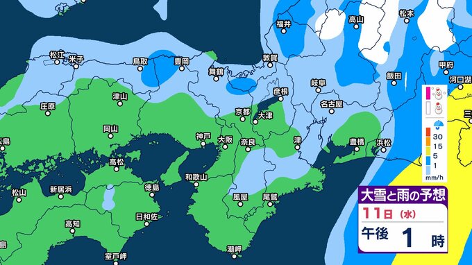 【関西の雪 どうなる?】近畿地方(大阪・京都・兵庫・滋賀・奈良・和歌山)の1時間ごとの雪雨シミュレーションと16日間天気予報「近畿南部平地3センチの予想」【気象庁/8日午後6時更新】 RSK山陽放送 2026年2月8日(日) 18:00 国内 天気 11日(祝・水)午後 8日(日)~11日(祝・水)近畿地方の雪雨シミュレーション・16日間天気予報 8日(日)~11日(祝・水)近畿地方の雪雨シミュレーション・16日間天気予報 ※シミュレーション(GSM)は比較的大まかに雨・雪雲を予想する傾向があるため、局地的には雨・雪が降らないこともあります。予想にはブレ幅がありますので、最新の気象情報を確認してください。