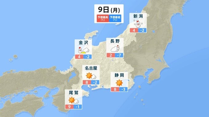 ▼雪の予想(東海)
