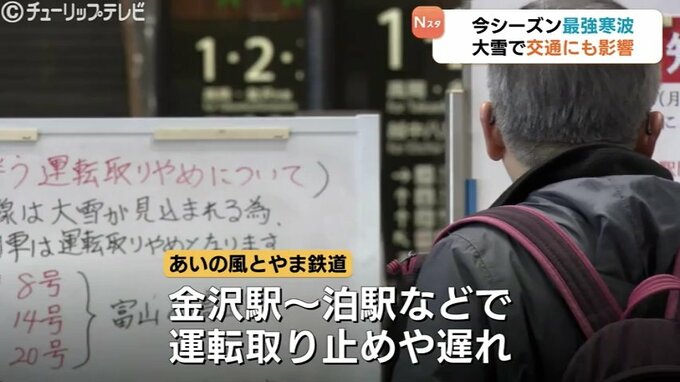 今シーズン最強寒波の影響で富山県内は7日夜から雪が降っています。この雪の影響で交通にも乱れが生じました。