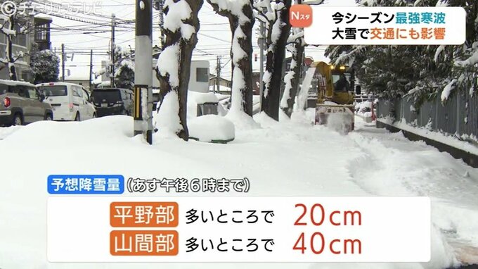 このあとも雪は降り続く見込みであすの夕方6時までの24時間降雪量は多いところで平野部で20センチ山間部で40センチの予想となっています。