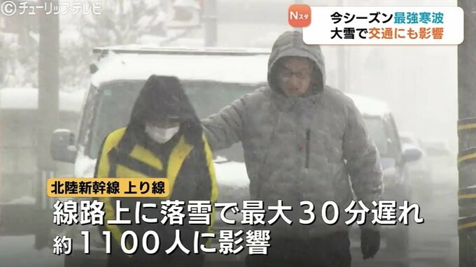 また、午後1時過ぎには北陸新幹線の上り線で線路上に大きな落雪が確認され最大30分の遅れが発生。およそ1100人に影響が出ました。