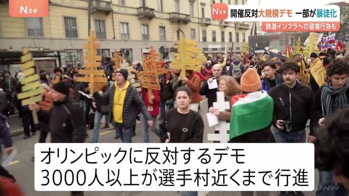 6日に開幕したミラノ・コルティナオリンピック™。ミラノの選手村近くでは、オリンピックの開催に反対する大規模なデモが行われ、一部が暴徒化しました。記者「オリンピックの施設の建設によって、多くの木が伐採…