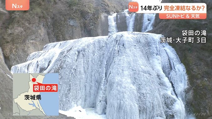 寒波が織りなす冬の風物詩を見てきました。空気がひんやりとしています。寒波が作り出した芸術が、茨城県の北部・大子町にある袋田の滝です。日本三名瀑のひとつに数えられていて、冬になると高さ120メートル、幅7…