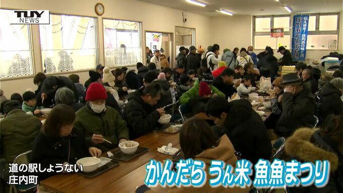 庄内の冬の味覚、寒ダラ汁などを味わえるイベントがきょう、山形県庄内町で開かれ、多くの人で賑わいました。