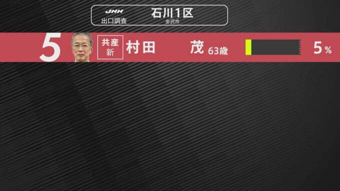 【選挙速報】衆議院選挙・石川3区の出口調査 自民・西田昭二氏が中道・近藤和也氏をリード