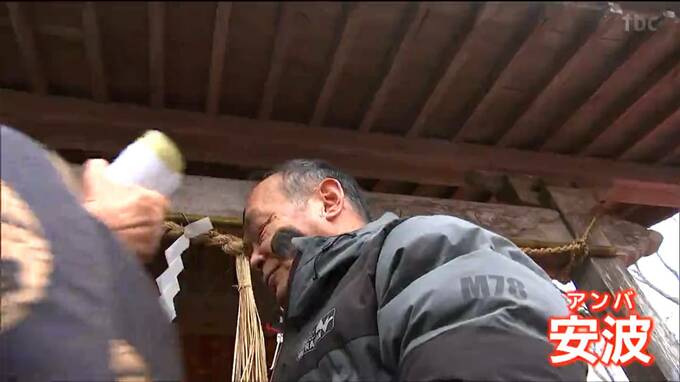 「安波大杉大明神」アンバサンは、300年以上の歴史があると伝わっていて氏子らは最後に、厄払いの言葉を3回唱え、ふるさとの復興を願いました。