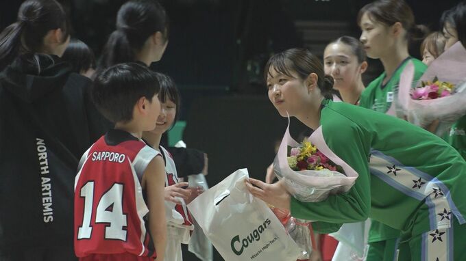 「地元・北海道でバスケするのはすごく楽しいし、今回自分が元気に走り回ってる姿を見せられなくて本当はすごい悔しいし残念な気持ちも多いんですけど。これから先、自分の良い姿を100%の姿を見せられるようにこれからも努力し続けるのでこれからも温かいご声援送ってくださると嬉しいです」