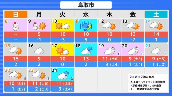 【中国地方 雪雨の予想】広島・岡山・山口・鳥取・島根 2月8日(日)~11日(祝・水)1時間ごとの雪雨シミュレーション【気象庁 8日午後10時更新】 RSK山陽放送 2026年2月8日(日) 22:13 国内 広島・岡山・山口・鳥取・島根の16日間天気予報 8日(日)~11日(祝・水)中国・四国地方の雪雨シミュレーション画像