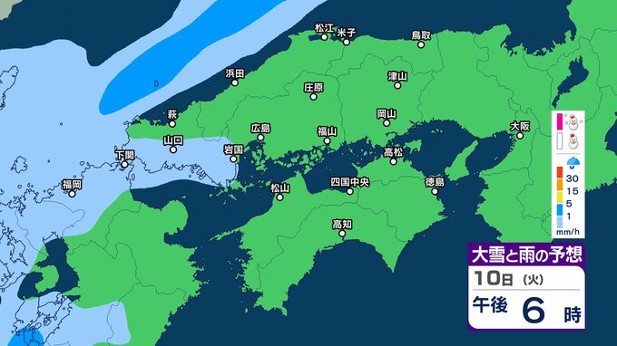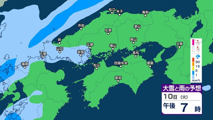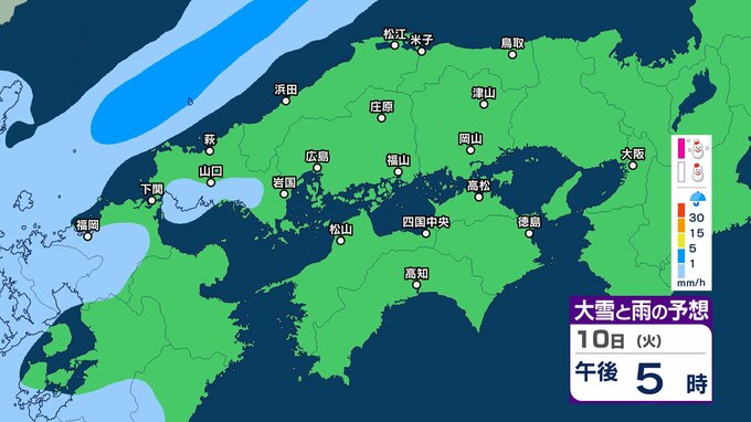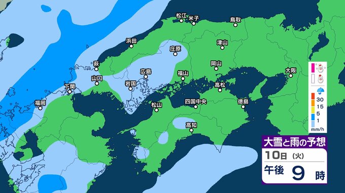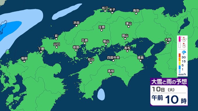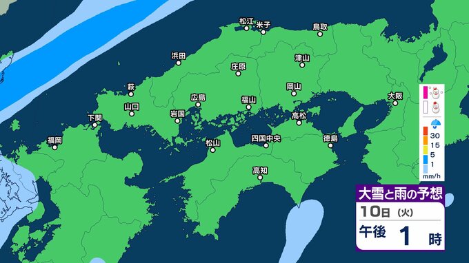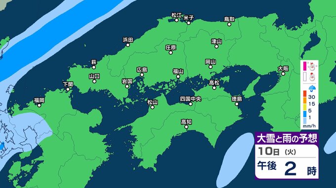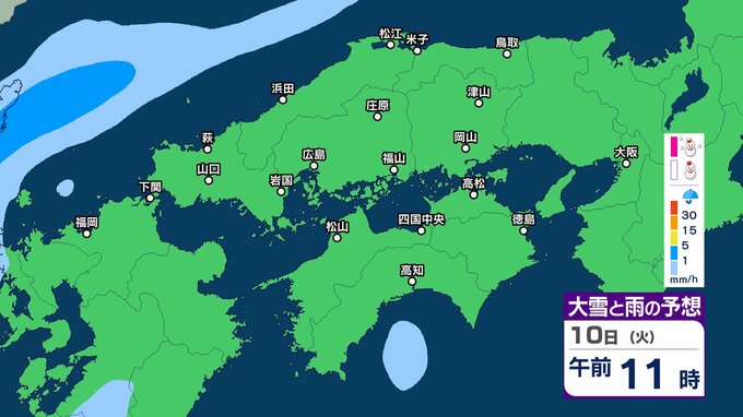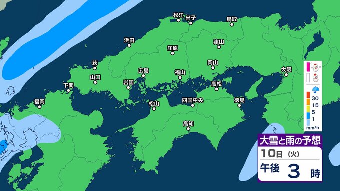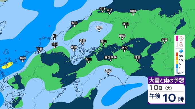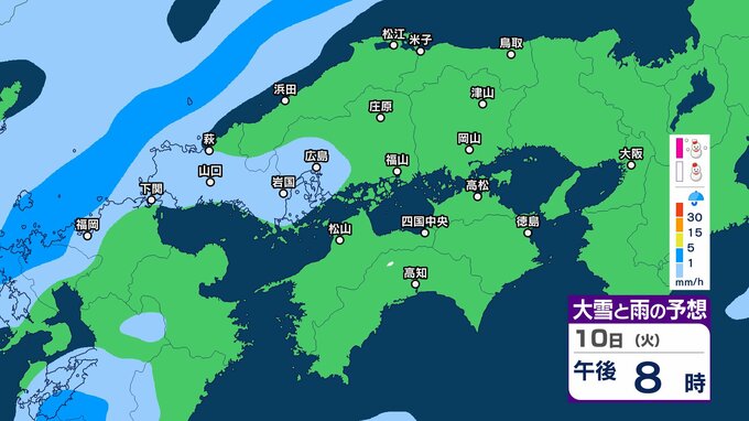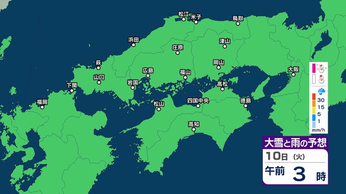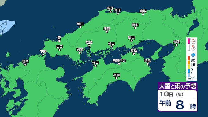 【四国地方の雪雨の予想】香川・愛媛・高知・徳島 2月8日(日)~11日(祝・水)1時間ごとの雪雨シミュレーション【気象庁 8日現在】 RSK山陽放送 2026年2月8日(日) 22:31 国内 10日(火) 8日(日)~11日(祝・水)中国・四国地方の雪雨シミュレーション画像 8日(日)~11日(祝・水)中国・四国地方の雪雨シミュレーション画像