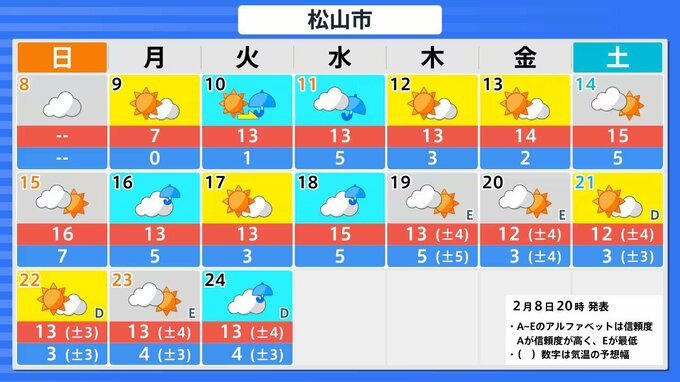 【四国地方の雪雨の予想】香川・愛媛・高知・徳島 2月8日(日)~11日(祝・水)1時間ごとの雪雨シミュレーション【気象庁 8日現在】 RSK山陽放送 2026年2月8日(日) 22:31 国内 香川・愛媛・高知・徳島の16日間天気予報 8日(日)~11日(祝・水)中国・四国地方の雪雨シミュレーション画像