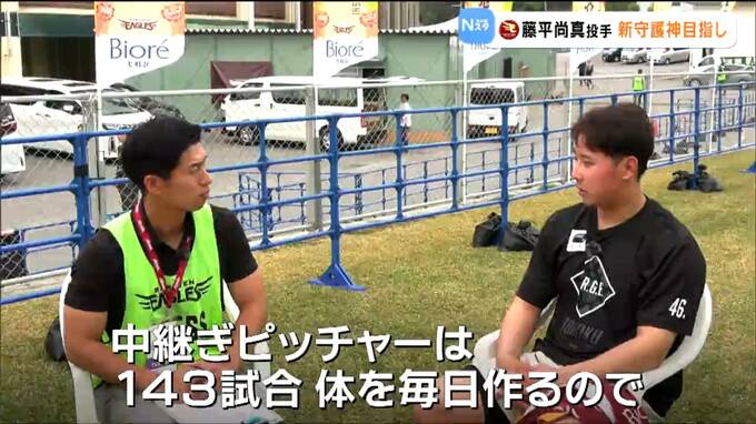 「中継ぎピッチャー143試合、基本体は毎日作るので、急に試合入ったりとか、急に開幕して体がびっくりしないように、ある程度シーズン中より高い負荷でやることを意識している」