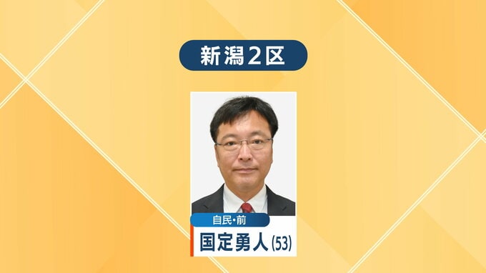 【衆議院選挙・新潟2区】自民・前 国定勇人(53)が当選確実 新潟放送 2026年2月8日(日) 22:39 国内 2月8日に投票が行われた衆議院議員選挙の新潟2区で、自民党の前職・国定勇人氏(53)の当選が確実となりました。 BSN新潟放送では出口調査やこれまでの取材とあわせて国定氏の当選は確実だと判断しました。