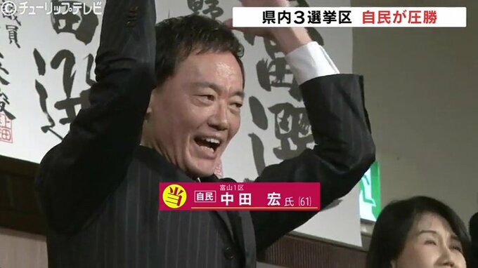 8日に投票が行われた衆院選は富山県内3つの選挙区すべてで自民候補が当選しました。富山1区は元横浜市長で自民・元職の中田宏氏が当選しました。富山1区で当選 中田宏氏(自民・元職)「富山のために、日本のため…