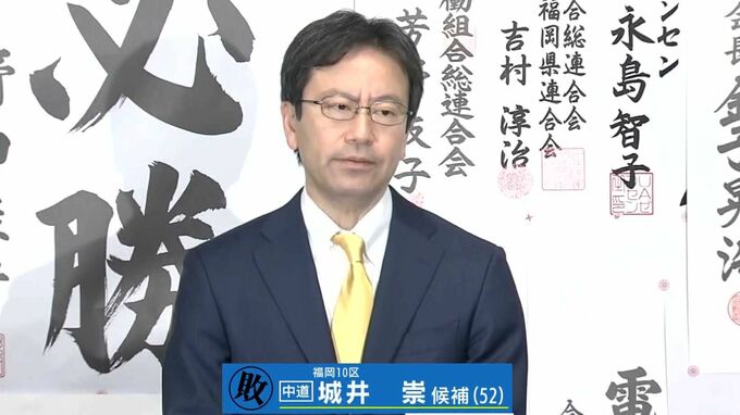 8日に投票が行われた衆議院選挙で、福岡10区から出馬した中道改革連合の前職・城井崇さん(52)の落選が確実となりました。城井さんの小選挙区敗戦のことばです。動画でご覧ください。