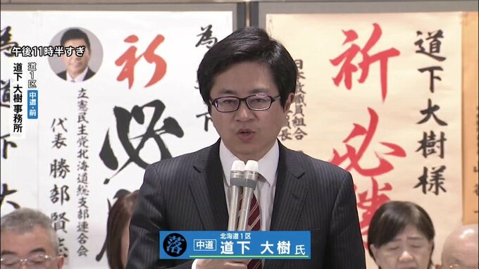 札幌市中央区と南区などが選挙区の北海道1区で、中道改革連合の前職、道下大樹さんが落選です。北海道1区 道下大樹氏(50)(中道・前)「私自身、中道改革連合の考え方、しっかりと前に進める、そういう思いで、…