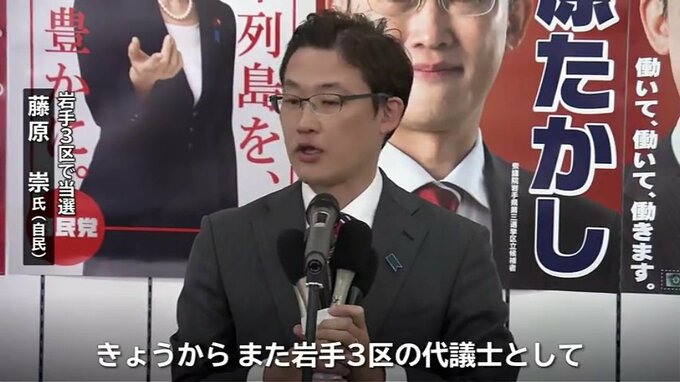 岩手3区は、自民党の元職、藤原崇氏が10万2000票余りを獲得し、中道改革連合の前職、小沢一郎氏との6度目の対決を制し、返り咲きを果たしました。