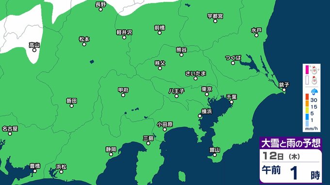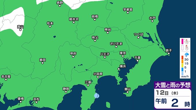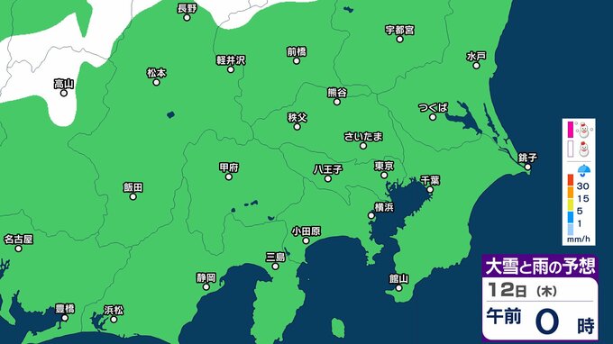 【雪雨の予想】東京・栃木・群馬・埼玉・茨城・千葉・神奈川・長野・山梨 9日(月)~12日(木)1時間ごとの雪雨シミュレーション 11日(水・祝)は関東の広範囲で雨か【気象庁/9日午前10時半更新】 RSK山陽放送 2026年2月9日(月) 10:45 国内 天気 12日(木) 9日(月)~12日(木)にかけて1時間ごとの雪雨シミュレーション 9日(月)~12日(木)にかけて1時間ごとの雪雨シミュレーション