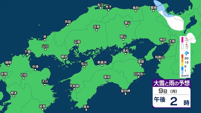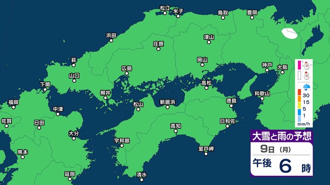 【中国・四国地方 雪雨の予想】広島・岡山・山口・鳥取・島根・香川・愛媛・高知・徳島 2月9日(月)~12日(木)1時間ごとの雪雨シミュレーション「11日(水・祝)は広範囲で雨か?」【気象庁 9日午前11時更新】 RSK山陽放送 2026年2月9日(月) 11:10 国内 9日(月)午後