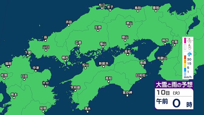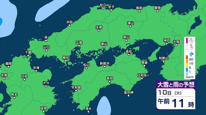 【中国・四国地方 雪雨の予想】広島・岡山・山口・鳥取・島根・香川・愛媛・高知・徳島 2月9日(月)~12日(木)1時間ごとの雪雨シミュレーション「11日(水・祝)は広範囲で雨か?」【気象庁 9日午前11時更新】 RSK山陽放送 2026年2月9日(月) 11:10 国内 10日(火)