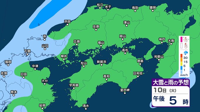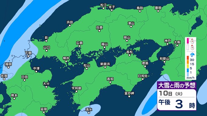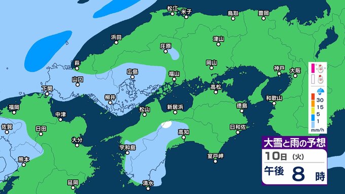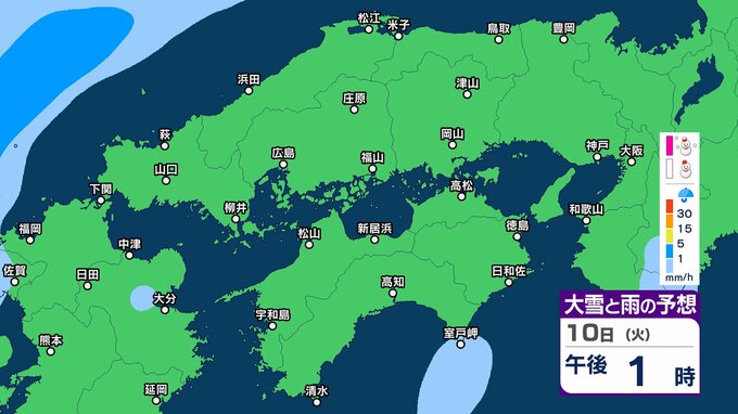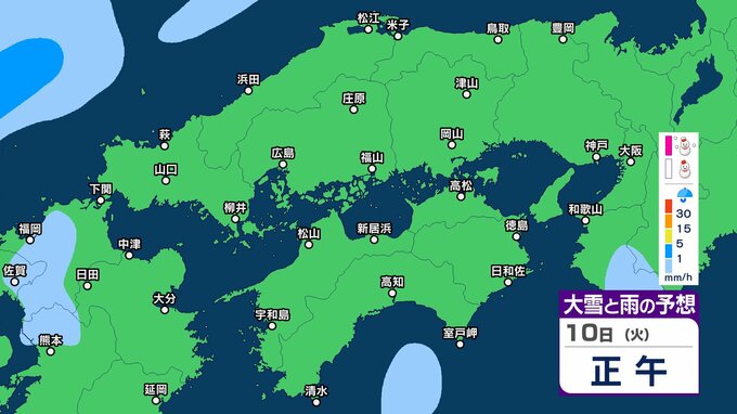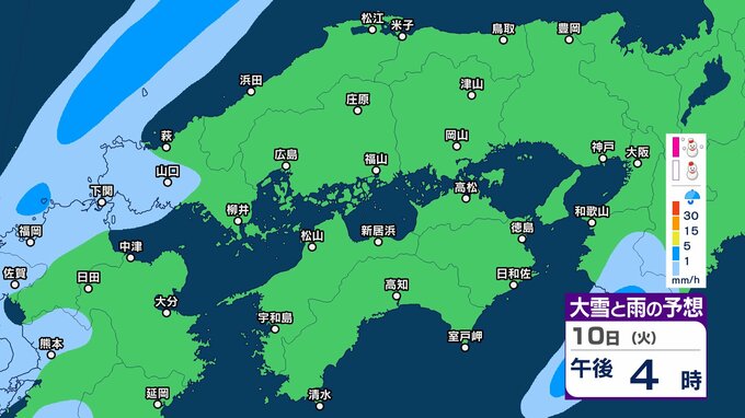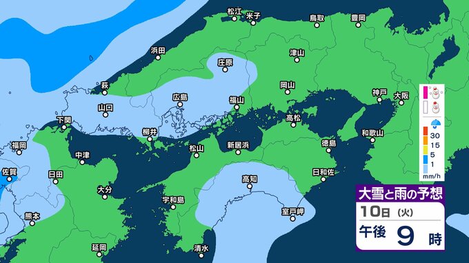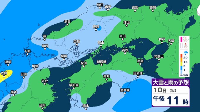 【中国・四国地方 雪雨の予想】広島・岡山・山口・鳥取・島根・香川・愛媛・高知・徳島 2月9日(月)~12日(木)1時間ごとの雪雨シミュレーション「11日(水・祝)は広範囲で雨か?」【気象庁 9日午前11時更新】 RSK山陽放送 2026年2月9日(月) 11:10 国内 11日(水) ▶9日(月)~12日(木)中国・四国地方の雪雨シミュレーション画像 ▶9日(月)~12日(木)中国・四国地方の雪雨シミュレーション画像