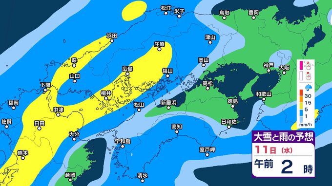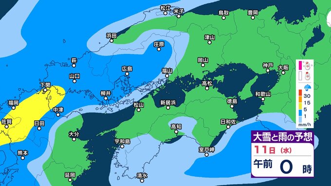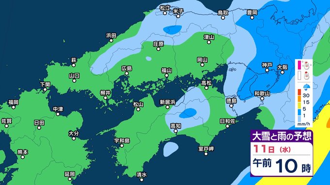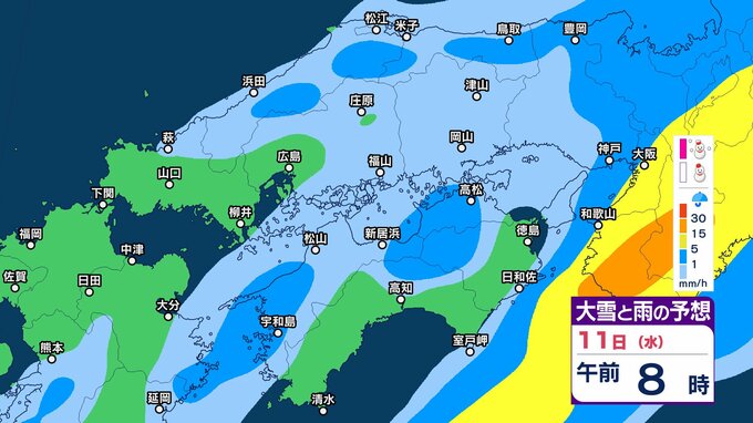 【中国・四国地方 雪雨の予想】広島・岡山・山口・鳥取・島根・香川・愛媛・高知・徳島 2月9日(月)~12日(木)1時間ごとの雪雨シミュレーション「11日(水・祝)は広範囲で雨か?」【気象庁 9日午前11時更新】 RSK山陽放送 2026年2月9日(月) 11:10 国内 11日(水・祝) ▶9日(月)~12日(木)中国・四国地方の雪雨シミュレーション画像 ▶9日(月)~12日(木)中国・四国地方の雪雨シミュレーション画像