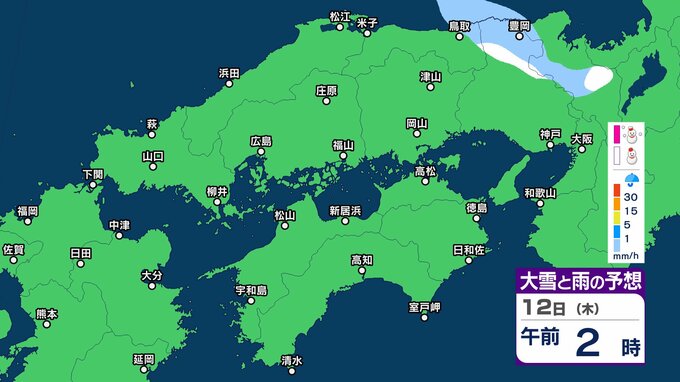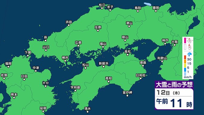 【中国・四国地方 雪雨の予想】広島・岡山・山口・鳥取・島根・香川・愛媛・高知・徳島 2月9日(月)~12日(木)1時間ごとの雪雨シミュレーション「11日(水・祝)は広範囲で雨か?」【気象庁 9日午前11時更新】 RSK山陽放送 2026年2月9日(月) 11:10 国内 12日(木) ▶9日(月)~12日(木)中国・四国地方の雪雨シミュレーション画像 ▶9日(月)~12日(木)中国・四国地方の雪雨シミュレーション画像