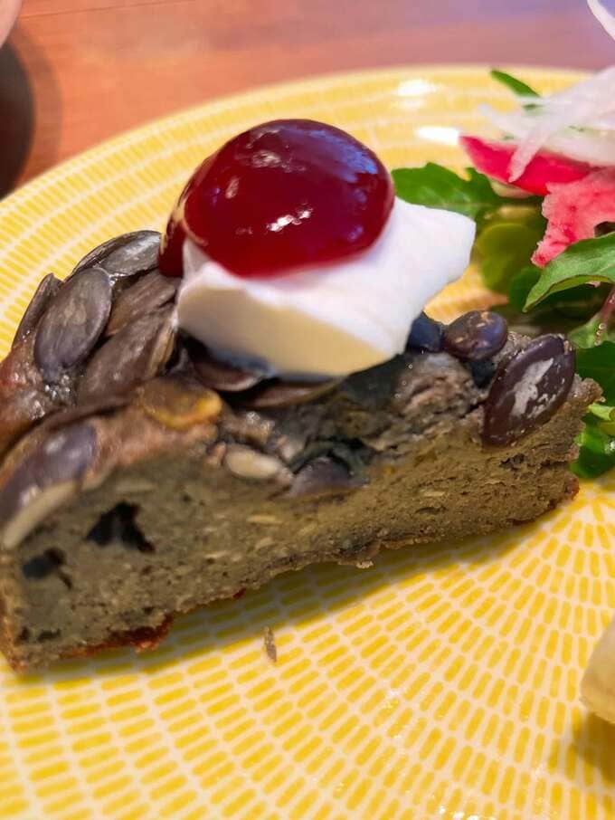 レシピも公開されており、材料はカッテージチーズ1パック、パルテノヨーグルト1つ、卵2つ、全粒粉 大さじ3杯位、てんさい糖 好きなだけ、練り黒ゴマ 好きな分だけ、レモン汁 少量。工藤さん曰く「測って作っていないのでざっくり」とのことです。