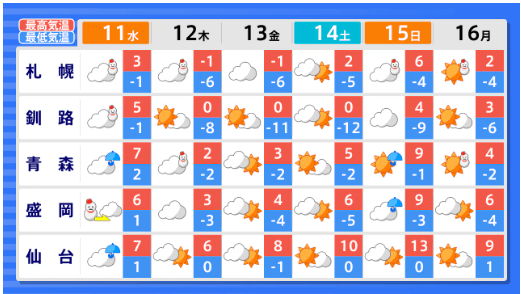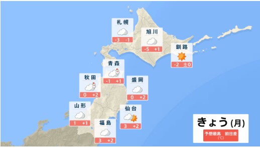 降雪量は少ないか...東北地方の向こう1か月(2/7~3/6)の天候の見通しは? 平均気温・降水量・日照時間・降雪量は? 気象庁 テレビユー山形 2026年2月9日(月) 11:28 国内 ■全国の天気を地方ごとに(画像) 画像はTBS NEWS DIG Powered by JNNより 画像ありの記事を最初から https://newsdig.tbs.co.jp/articles/-/2455805?display=1
