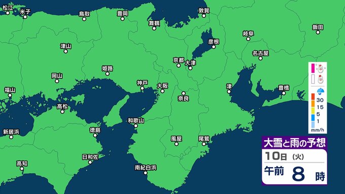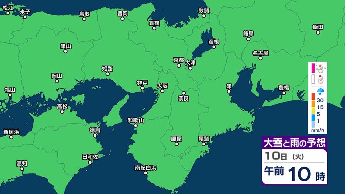 【関西の雪雨 どうなる?】大阪・京都・神戸・奈良・和歌山 9日(月)~12日(木)1時間ごとの雪雨シミュレーション&16日間天気予報 祝日の11日(水)は広範囲でまとまった雨か【気象庁 9日現在】 RSK山陽放送 2026年2月9日(月) 12:27 国内 10日(火) 11日(水・祝)の天気は?9日~12日まで近畿地方の雪雨シミレーション